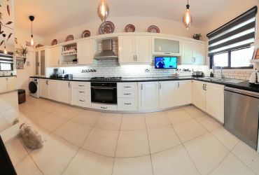 Because of the elevated location, we receive free internet, as we relay a signal to a nearby mast. The property also has fourteen photovoltaic panels, which have reduced the electricity bills to around €20 per month, and is cheap to run all the year round. The house has oil fired central heating and there’s air conditioning units in every room.